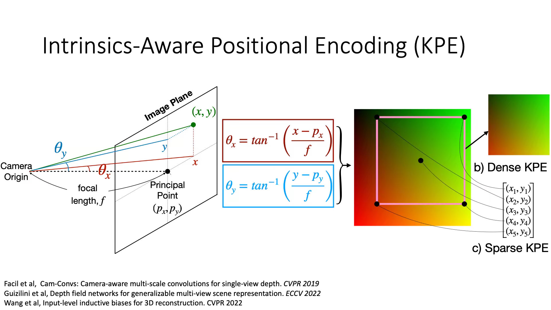Objects undergo varying amounts of perspective distortion as they move across a camera's field of view. Models for predicting 3D from a single image often work with crops around the object of interest and ignore the location of the object in the camera's field of view. We note that ignoring this location information further exaggerates the inherent ambiguity in making 3D inferences from 2D images and can prevent models from even fitting to the training data. To mitigate this ambiguity, we propose Intrinsics-Aware Positional Encoding (KPE), which incorporates information about the location of crops in the image and camera intrinsics. Experiments on three popular 3D-from-a-single-image benchmarks: depth prediction on NYU, 3D object detection on KITTI & nuScenes, and predicting 3D shapes of articulated objects on ARCTIC, show the benefits of KPE.